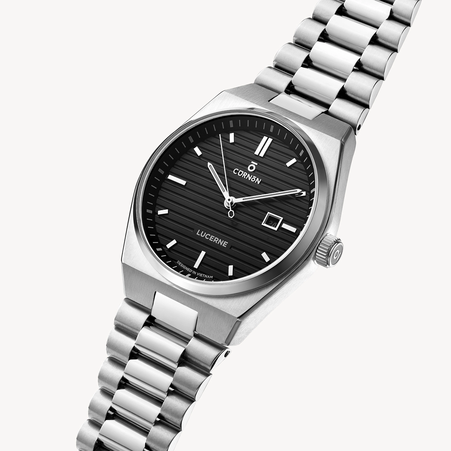 Sở hữu mặt sunray đen tạo chiều sâu, Lucerne Deep Night mang lại nét mạnh mẽ, cuốn hút, bản lĩnh. Mặt số 40mm, nền dial khắc line chìm cùng dây đeo màu bạc sắc lạnh tạo nên sự cân bằng giữa lịch lãm và cá tính, phù hợp cho nhiều dịp, từ đi chơi, đi làm đến cả những dịp trang trọng