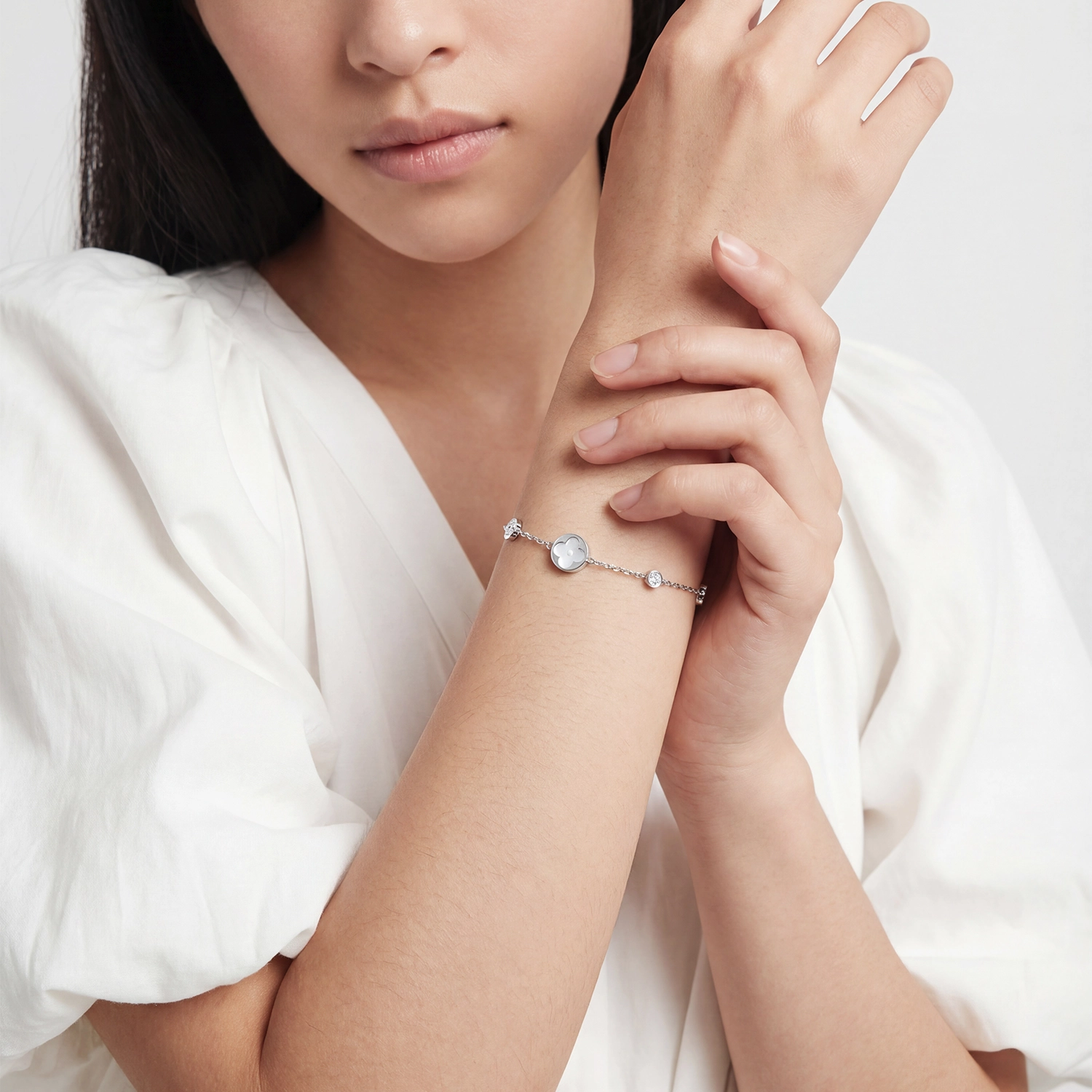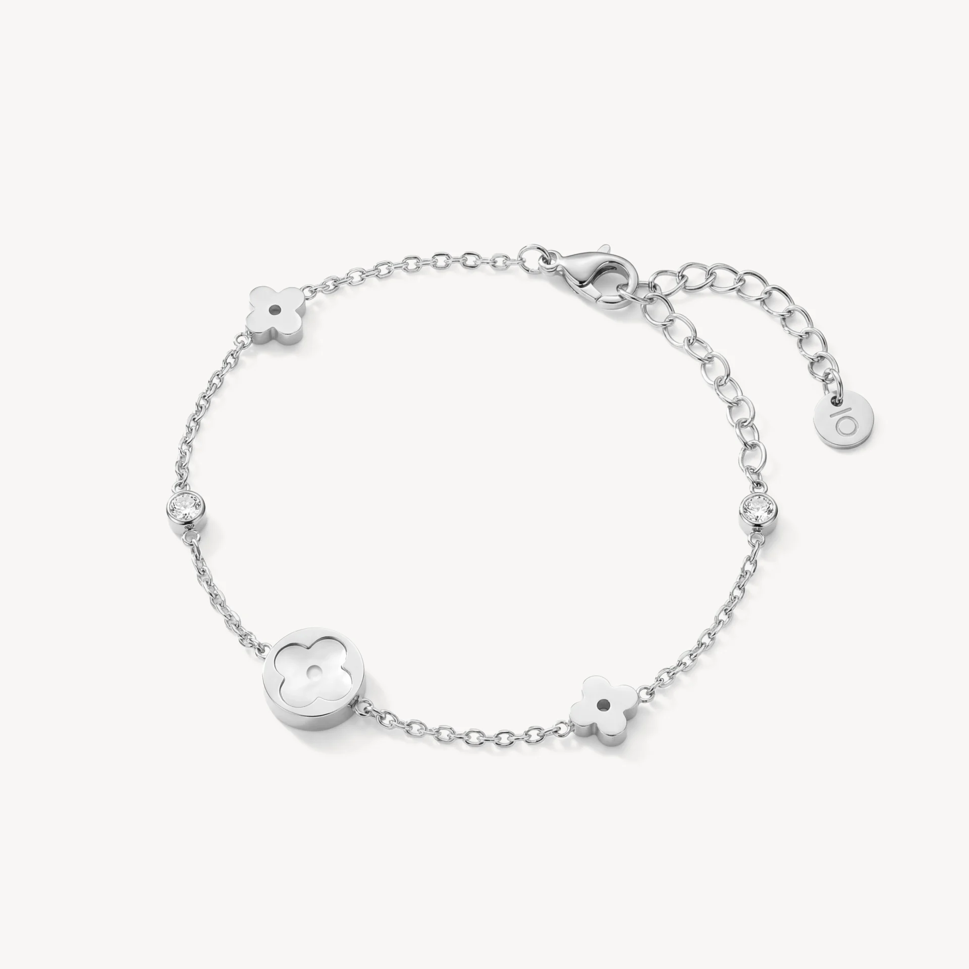 Fiori Bracelet gây ấn tượng với điểm nhấn hoa khảm trai trên sợi dây mảnh, ánh xà cừ phản chiếu theo từng chuyển động, trang nhã mà vẫn giữ trọn nét tối giản. Thiết kế thanh lịch, dễ phối, phù hợp cho cả ngày thường lẫn những dịp đặc biệt.
