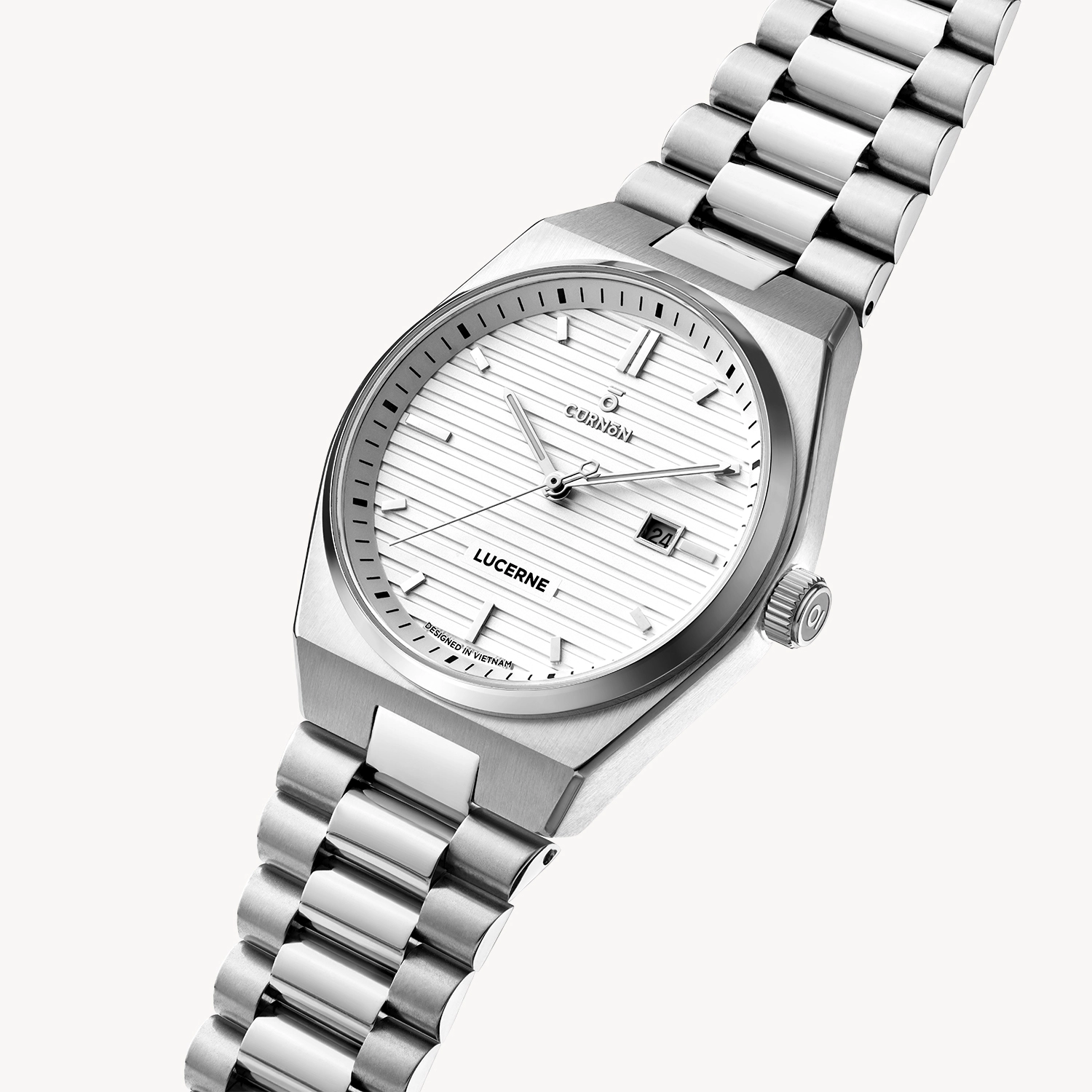 Khoác lên mình lớp vỏ màu bạc sang trọng cùng mặt số 40mm trắng lì khắc line chìm tinh xảo, Lucerne Snowline tạo ấn tượng bằng vẻ ngoài khỏe khoắn nhưng đầy thanh lịch.